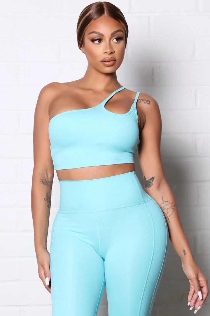 Best deal 🌟 Fashion Nova Sport Core Super Soft Active One Shoulder Tank – Aqua 🌟